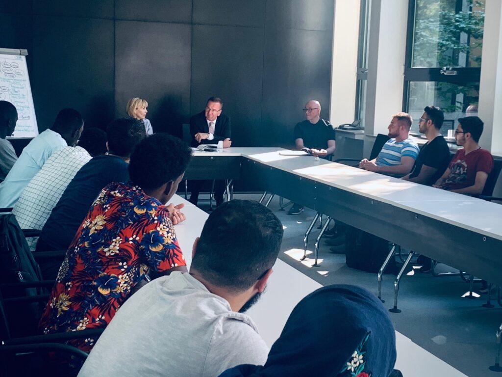 Die Landesbeauftragte Doris Schröder-Köpf und der niedersächsische Innenminister Boris Pistorius zeigten sich beeindruckt von den Ausbildungserfolgen der Brückenbauer*innen e.V., die am 18.06.2019 zu einem Besuch in den Niedersächsischen Landtag gekommen waren.