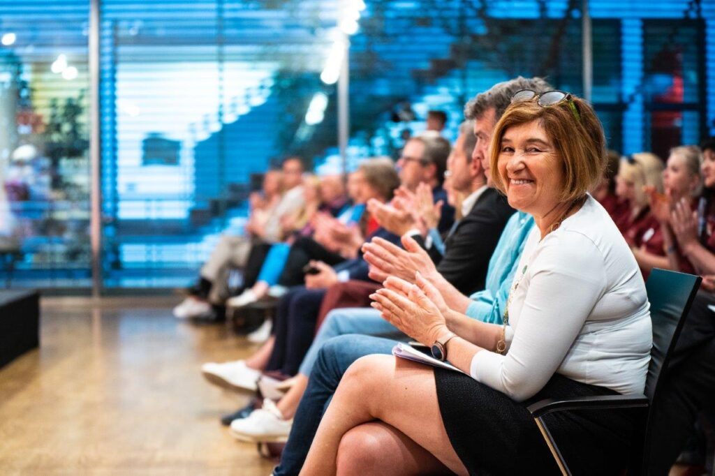Im Fokus des anschließenden Austausches der Zeitzeuginnen und Zeitzeugen stand das gesellschaftliche Engagement und welche Rolle dieses beim Neustart der zu uns geflüchteten Menschen spielt. Aber auch die zwingend notwendige gleichberechtige Teilhabe von Zugewanderten an politischen Prozessen sowie alltäglicher und struktureller Rassismus wurden von den Podiumsgästen viel diskutiert.
