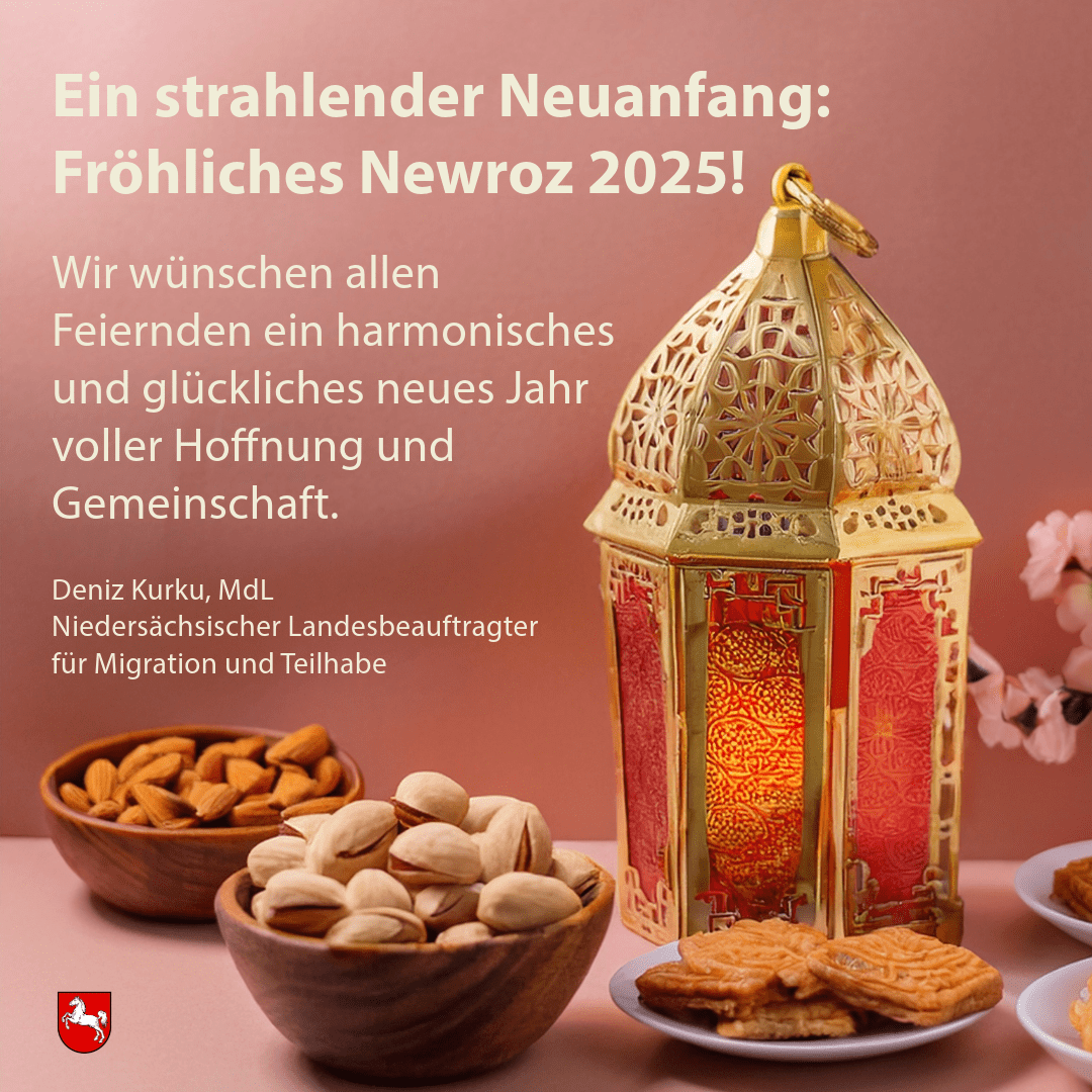 Zum Newroz-Fest sendet der Landesbeauftragte Deniz Kurku allen feiernden Menschen in Niedersachsen herzliche Grüße. Dieses bedeutende Fest markiert nicht nur den Beginn des Frühlings, sondern auch einen Neuanfang, der Hoffnung und Freude zum Ausdruck bringt. Es ist eine Zeit, in der Familien und Freunde zusammenkommen und in der die Vielfalt und der kulturelle Reichtum gefeiert wird, der uns alle verbindet. Die Gemeinschaften bereichert mit ihrem kulturellen Erbe und Engagement unsere gesamte Gesellschaft in Niedersachsen.