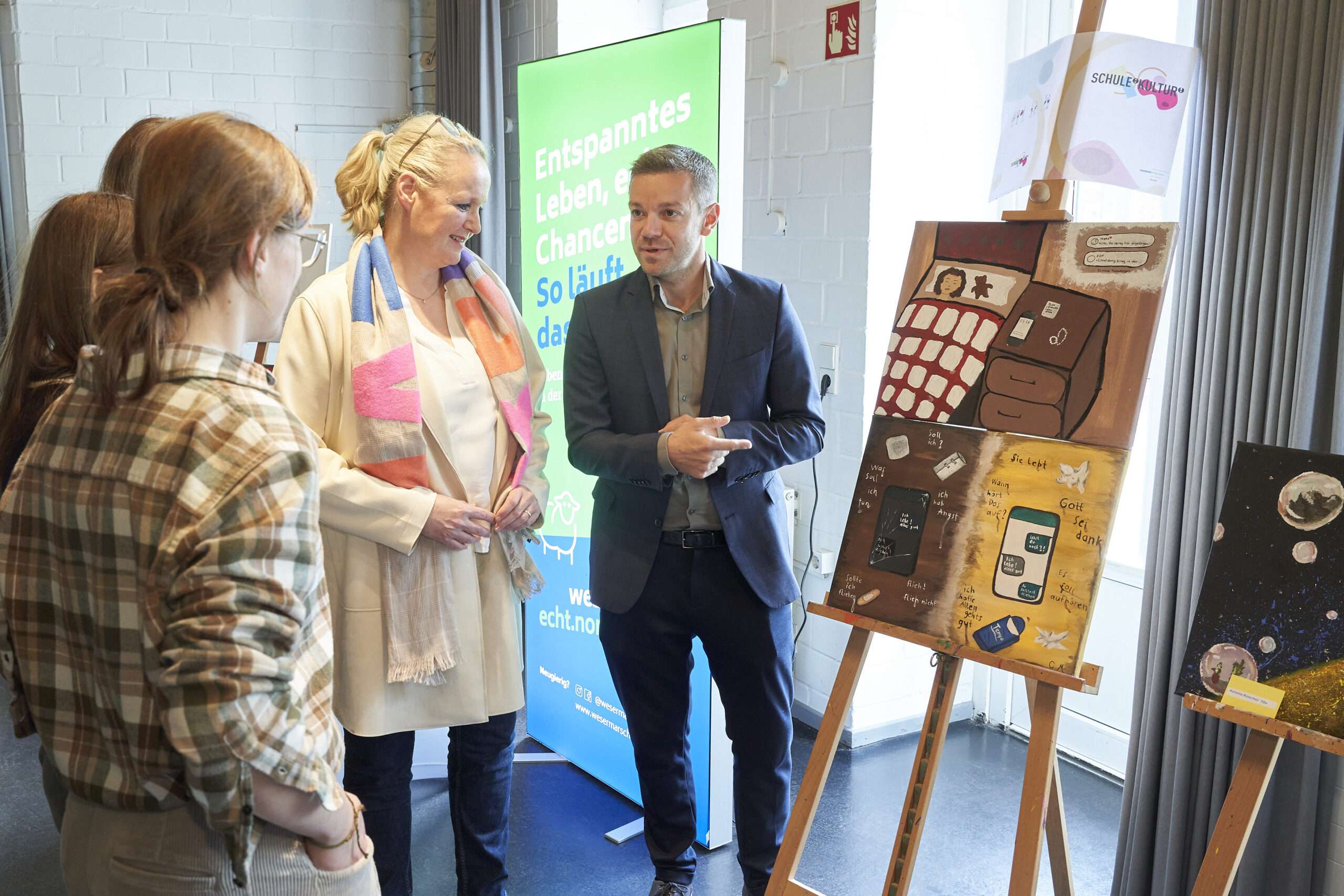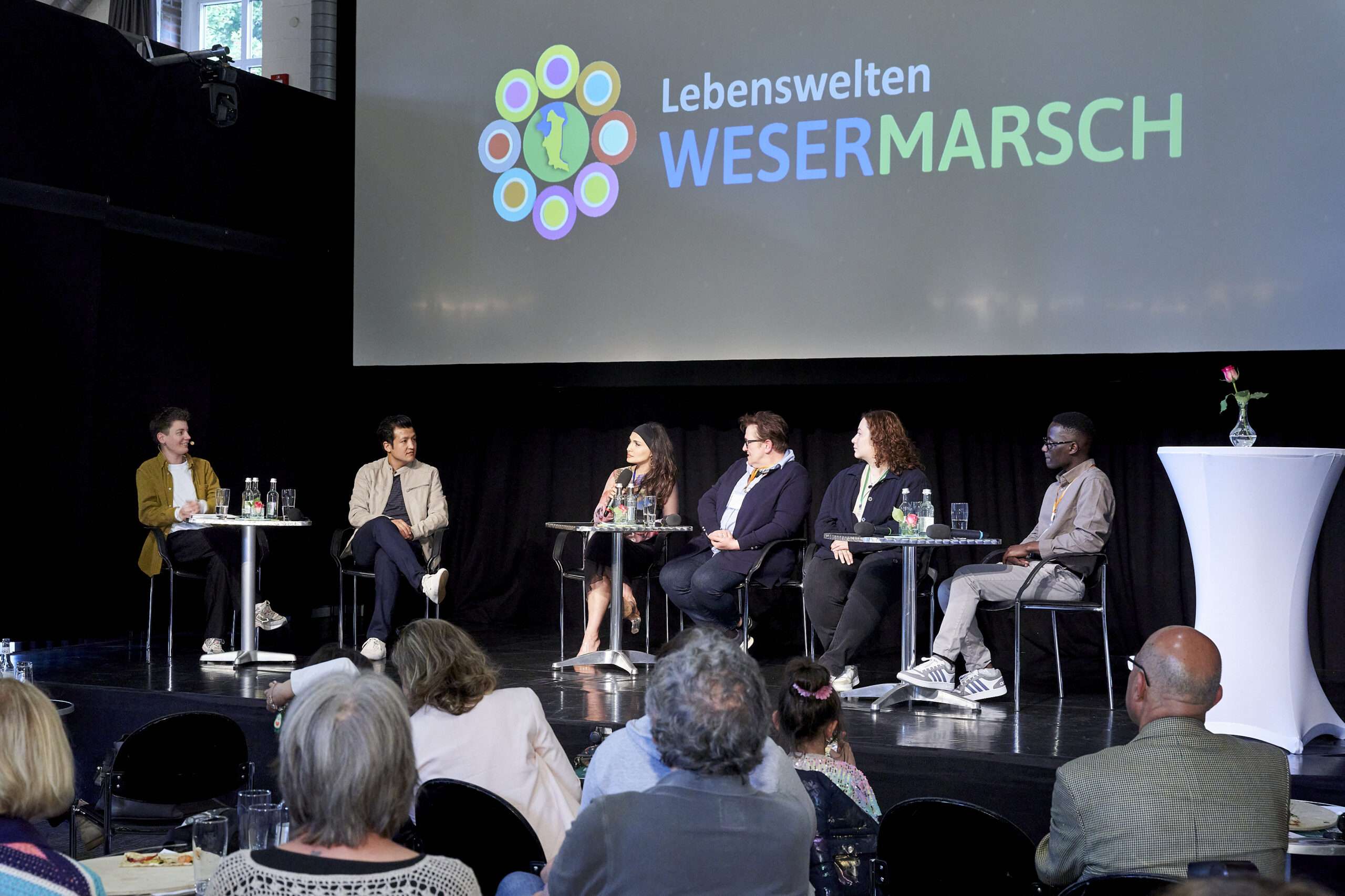 In verschiedenen Veranstaltungen werden sie der Öffentlichkeit präsentiert. Dabei treten die Protagonist*innen im Rahmen moderierter Podiumsdiskussionen mit dem Publikum in den Austausch. So werden nicht nur die Ankommenserfahrungen von Menschen mit Migrationsgeschichte an andere Neuzugewanderte und an Alteingesessene weitergegeben. Gleichzeitig entsteht Raum für Begegnung und Austausch über das gemeinsame Leben in der Wesermarsch. Durch Kooperationen mit Schulen und Unternehmen der Region fördert das Projekt zudem den Aufbau lokaler Netzwerke zu gesellschaftlicher Teilhabe und Integration im ländlichen Raum.