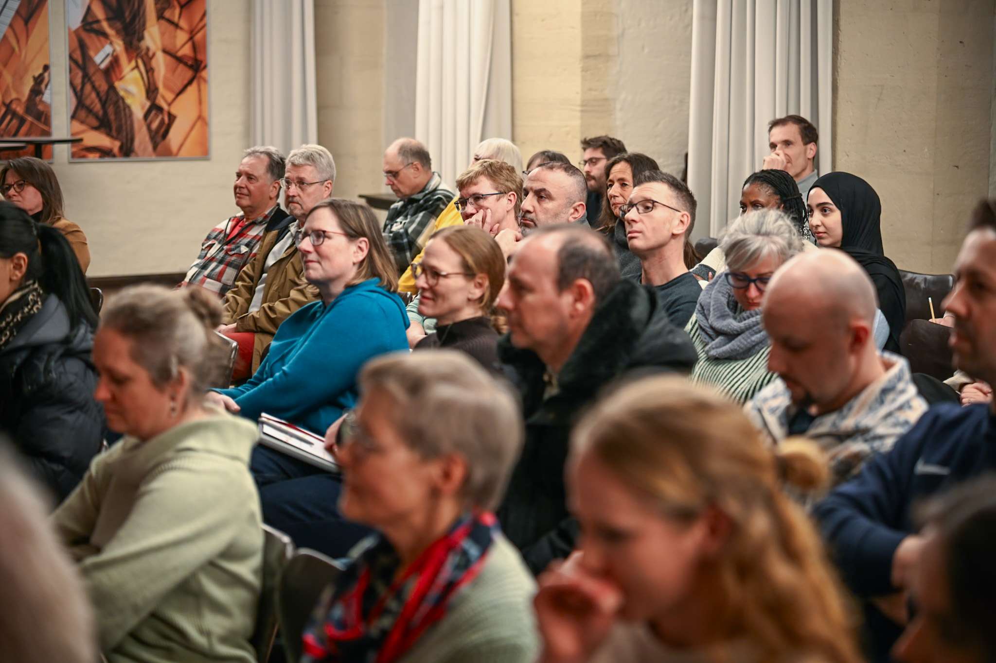 Nach einer Pause wurde der Austausch mit dem Publikum geöffnet. Dabei rückten auch die Integrationsstrukturen im Landkreis Gifhorn in den Mittelpunkt – von verlässlicher Migrationsarbeit über starke ehrenamtliche Netzwerke bis hin zur guten Zusammenarbeit mit Jobcentern und weiteren Institutionen. Dies alles, so wurde deutlich, gilt es trotz sichtbarer Einschnitte des Bundes in die Sprachkursangebote auch in Zukunft aufrechtzuerhalten. Viele Besucherinnen und Besucher schilderten eigene Erfahrungen, stellten Fragen und hoben hervor, wie wichtig klare Orientierung, offene Begegnungsräume und Unterstützung im Alltag sind. Gemeinsames Fazit: Teilhabe bleibt eine gesamtgesellschaftliche Aufgabe, die nur gelingt, wenn alle an einem Strang ziehen.