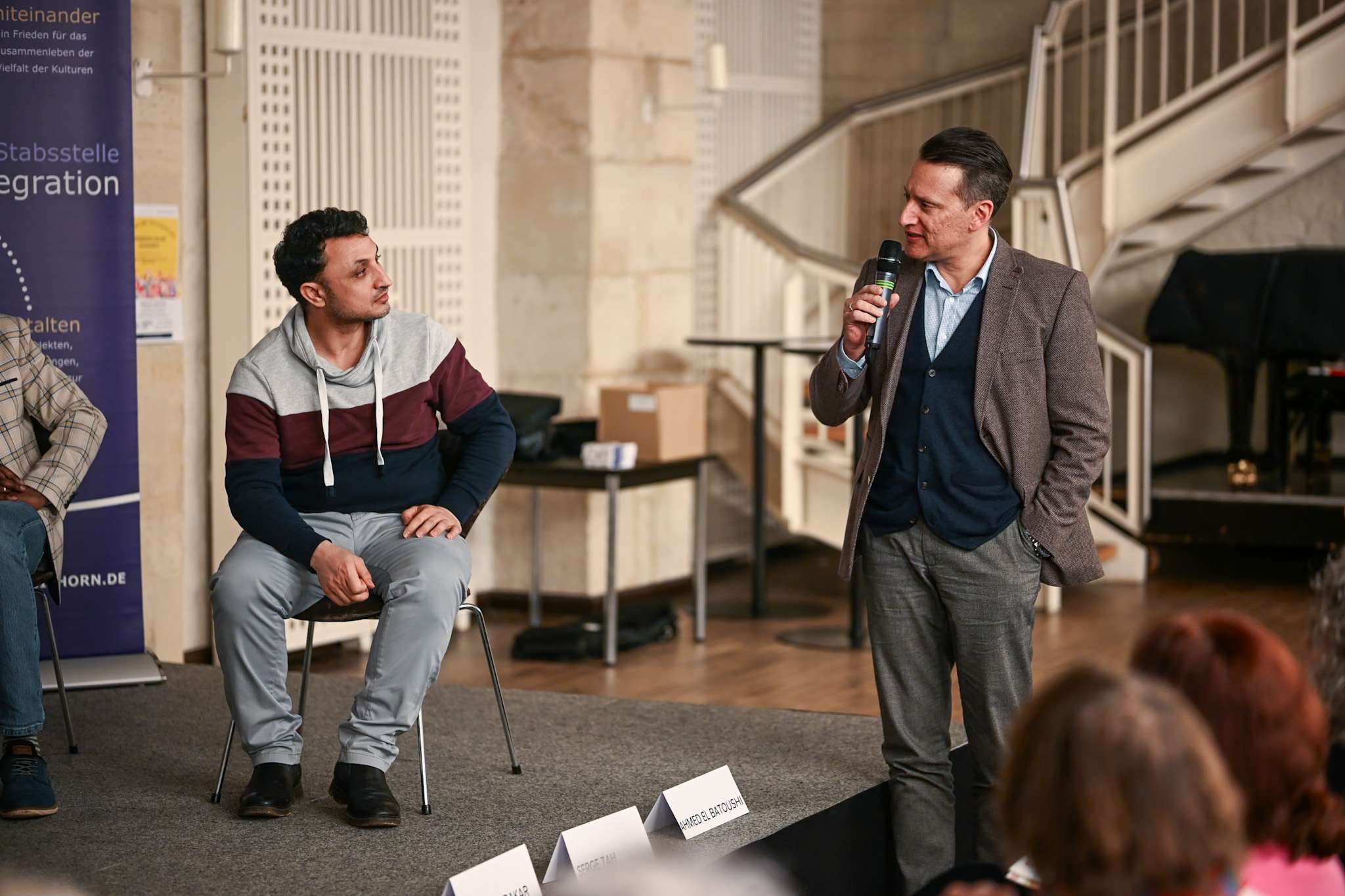 Niedersachsens Landesbeauftragter Deniz Kurku trat in der ersten Hälfte zweistündigen Veranstaltung in den direkten Dialog mit den zugewanderten Podiumsgästen – allesamt Persönlichkeiten mit beeindruckenden Lebenswegen. Sie berichteten von Erfolgen wie auch von Herausforderungen, im Landkreis Fuß zu fassen – und von kulturellen Besonderheiten in Deutschland, an die sie sich auch erst gewöhnen mussten.
