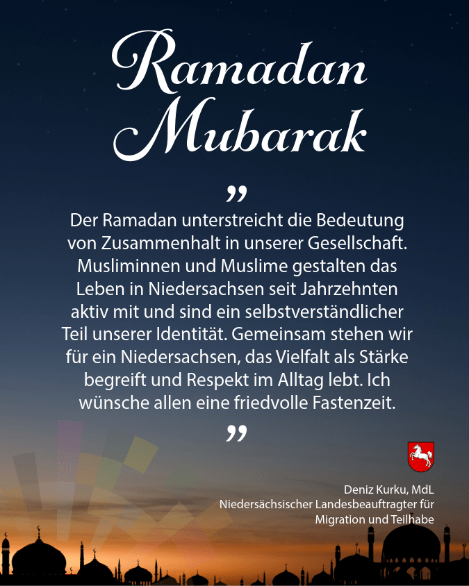 Zum Beginn des muslimischen Fastenmonats Ramadan 2026 und der christlichen Fastenzeit – Ministerpräsident Olaf Lies und der Landesbeauftragte für Migration