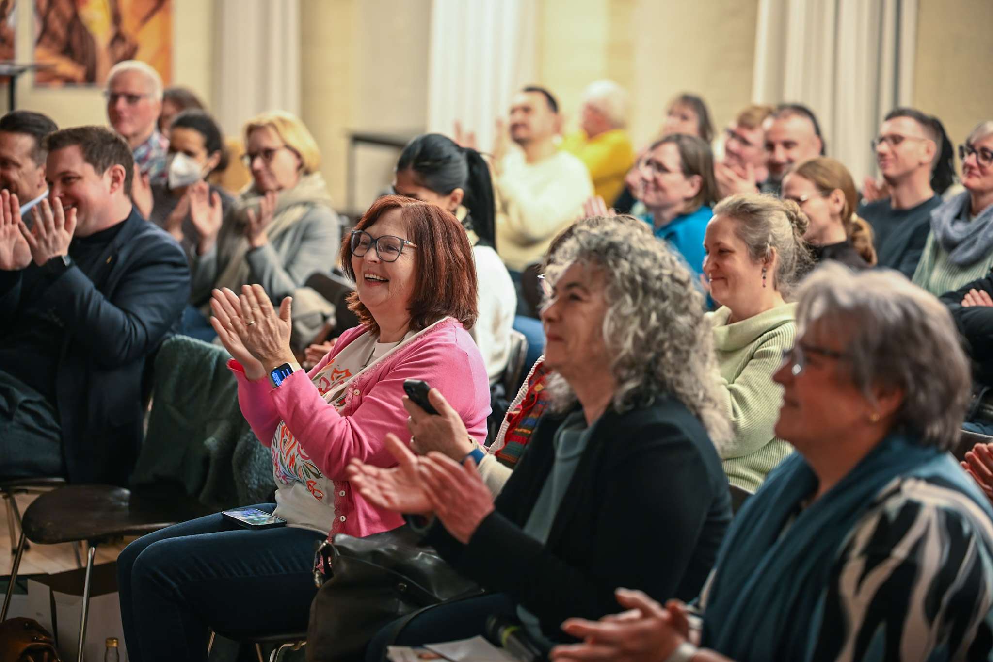 Nach einer Pause wurde der Austausch mit dem Publikum geöffnet. Dabei rückten auch die Integrationsstrukturen im Landkreis Gifhorn in den Mittelpunkt – von verlässlicher Migrationsarbeit über starke ehrenamtliche Netzwerke bis hin zur guten Zusammenarbeit mit Jobcentern und weiteren Institutionen. Dies alles, so wurde deutlich, gilt es trotz sichtbarer Einschnitte des Bundes in die Sprachkursangebote auch in Zukunft aufrechtzuerhalten. Viele Besucherinnen und Besucher schilderten eigene Erfahrungen, stellten Fragen und hoben hervor, wie wichtig klare Orientierung, offene Begegnungsräume und Unterstützung im Alltag sind. Gemeinsames Fazit: Teilhabe bleibt eine gesamtgesellschaftliche Aufgabe, die nur gelingt, wenn alle an einem Strang ziehen.
